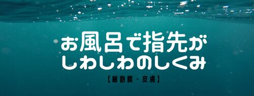 お風呂に長時間入り、手足の指先がしわしわになった経験をもつヒトは多いと思います。 なぜしわしわになるでしょうか?それは、お風呂のお湯皮膚がふやけてしまうためです。ふやけるとは、皮膚の外側の細胞に水が入り込み、ふくらんだ状態のことです。 ここ…